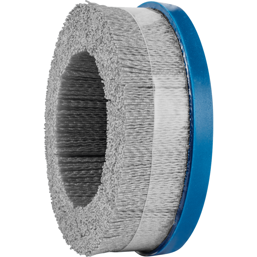 Besonders aggressiv arbeitende Bürste mit Stützring. Eignet sich besonders gut zum Entgraten und zur Oberflächenbearbeitung auf stationären Maschinen. Composite-Bürsten von PFERD TOOLS sind speziell für den industriellen, automatisierten Einsatz entwickelt. Sie eignen sich für eine Vielzahl von Bearbeitungsaufgaben und sind durch ihre variablen Aufspannmöglichkeiten auf vielen verschiedenen Antriebsmaschinen einsetzbar. Dies bietet den Vorteil, dass die Produktion und Nacharbeiten des Werkstückes auf der selben Maschine durchgeführt werden können. Hierdurch lassen sich lohnintensive, manuelle Arbeiten reduzieren und reproduzierbare Ergebnisse mit kurzen Taktzeiten erzielen. Für einen effizienten Einsatz müssen zahlreiche Anwendungsparameter wie z. B. Bearbeitungszeit und Vorschub aufeinander abgestimmt und die dazu passende Bürste ausgewählt werden. Bürsten mit Keramikkorn (CO) zeichnen sich durch hohe Zähigkeit und sehr gute Schneidfähigkeit aus. Zur Erzielung hoher Abtragswerte und eines aggressiven Bürstverhaltens. Kunststoffbesatz hält Temperaturen bis 220 °C stand.