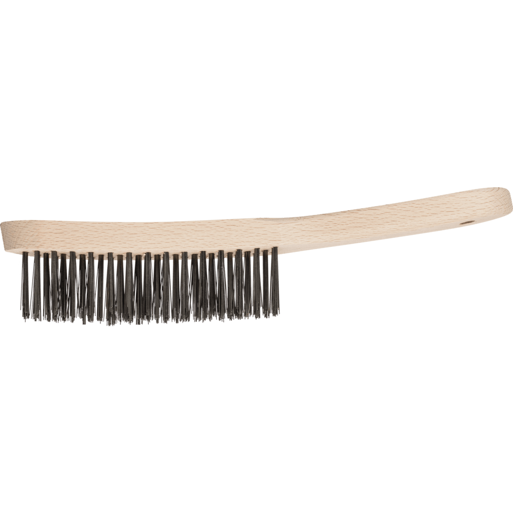 PFERD TOOLS bietet ein umfangreiches Programm an Handbürsten mit unterschiedlichen Formen und Besatzmaterialien. Aufgrund der V-Form zum Reinigen, Säubern und Entrosten von Kehl- und V-Nähten geeignet. Stahldraht ist das gebräuchlichste Besatzmaterial. Bürsten mit dem Besatzmaterial Stahldraht eignen sich besonders gut zur Oberflächenbearbeitung und zum Entgraten. PFERD TOOLS Spezialdraht verfügt über eine hohe Zug- und Biegewechselfestigkeit. Dieser gewährleistet eine optimale Abnutzung des Drahtes sowie eine hohe Standzeit, auch bei extremen Bürstanwendungen. Stahldraht hält Temperaturen bis 300 °C stand.