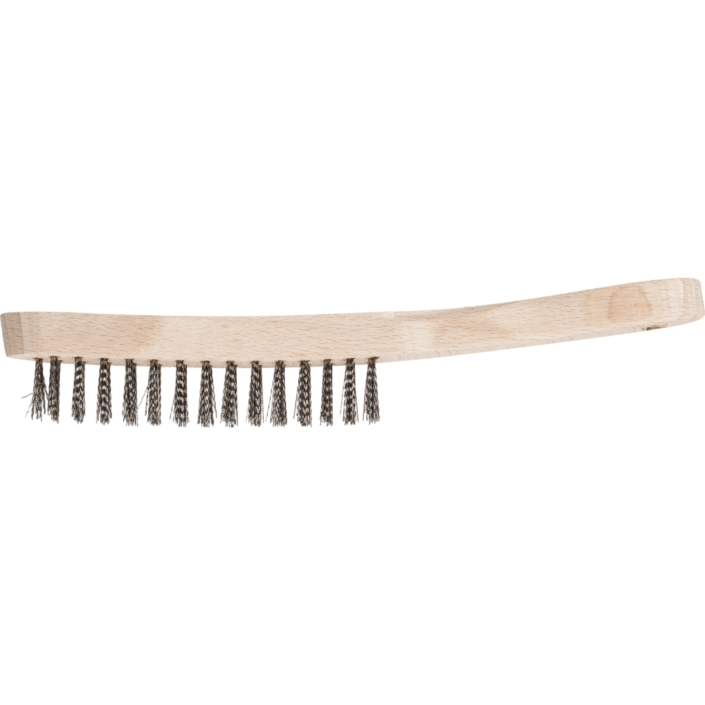 PFERD TOOLS bietet ein umfangreiches Programm an Handbürsten mit unterschiedlichen Formen und Besatzmaterialien. Universell für alle leichten Reinigungs- und Entrostarbeiten einsetzbar. Um die besonderen Ansprüche bei der Bearbeitung von Edelstahl (INOX) zu erfüllen, verwendet PFERD TOOLS bei allen INOX-Bürsten die Drahtqualität 1.4310 (V2A). Praxiserfahrungen aus dem industriellen Umfeld bestätigen, dass sie eine sehr gute Korrosionsbeständigkeit bei optimaler Standzeit aufweist. Alle PFERD TOOLS Bürsten mit INOX-Besatz sind blau gekennzeichnet und für den Einsatz auf allen Edelstählen (INOX), wie z. B. V4A, geeignet. Die Drahtqualität 1.4310 neigt bei Kaltverfestigung zu ferromagnetischem Verhalten, das heißt, sie wird von Magneten angezogen.;Ursache hierfür ist eine Gefügeveränderung, die durch Verformung, z. B. während des Drahtziehens, hervorgerufen wird. Dies hat keinen Einfluss auf die Qualität und Korrosionsbeständigkeit des INOX-Besatzes. Er behält seine korrosionsbeständigen Eigenschaften. Edelstahldraht (INOX) hält Temperaturen bis 450 °C stand.