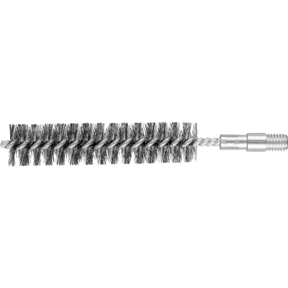 Speziell zum Entgraten und Reinigen von Rohren, Gewinden, Muffen und Zylindern geeignet. Um die besonderen Ansprüche bei der Bearbeitung von Edelstahl (INOX) zu erfüllen, verwendet PFERD TOOLS bei allen INOX-Bürsten die Drahtqualität 1.4310 (V2A). Praxiserfahrungen aus dem industriellen Umfeld bestätigen, dass sie eine sehr gute Korrosionsbeständigkeit bei optimaler Standzeit aufweist. Alle PFERD TOOLS Bürsten mit INOX-Besatz sind blau gekennzeichnet und für den Einsatz auf allen Edelstählen (INOX), wie z. B. V4A, geeignet. Die Drahtqualität 1.4310 neigt bei Kaltverfestigung zu ferromagnetischem Verhalten, das heißt, sie wird von Magneten angezogen.;Ursache hierfür ist eine Gefügeveränderung, die durch Verformung, z. B. während des Drahtziehens, hervorgerufen wird. Dies hat keinen Einfluss auf die Qualität und Korrosionsbeständigkeit des INOX-Besatzes. Er behält seine korrosionsbeständigen Eigenschaften. Edelstahldraht (INOX) hält Temperaturen bis 450 °C stand. Neben dem Gewinde verfügt diese Innenbürste zusätzlich über einen 10 mm Schaftansatz.