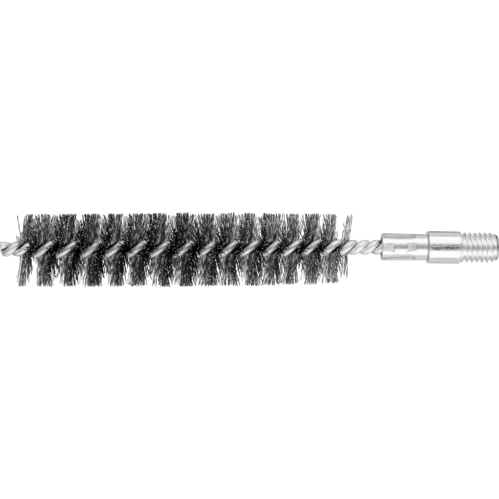 Speziell zum Entgraten und Reinigen von Rohren, Gewinden, Muffen und Zylindern geeignet. Stahldraht ist das gebräuchlichste Besatzmaterial. Bürsten mit dem Besatzmaterial Stahldraht eignen sich besonders gut zur Oberflächenbearbeitung und zum Entgraten. PFERD TOOLS Spezialdraht verfügt über eine hohe Zug- und Biegewechselfestigkeit. Dieser gewährleistet eine optimale Abnutzung des Drahtes sowie eine hohe Standzeit, auch bei extremen Bürstanwendungen. Stahldraht hält Temperaturen bis 300 °C stand. Neben dem Gewinde verfügt diese Innenbürste zusätzlich über einen 10 mm Schaftansatz.