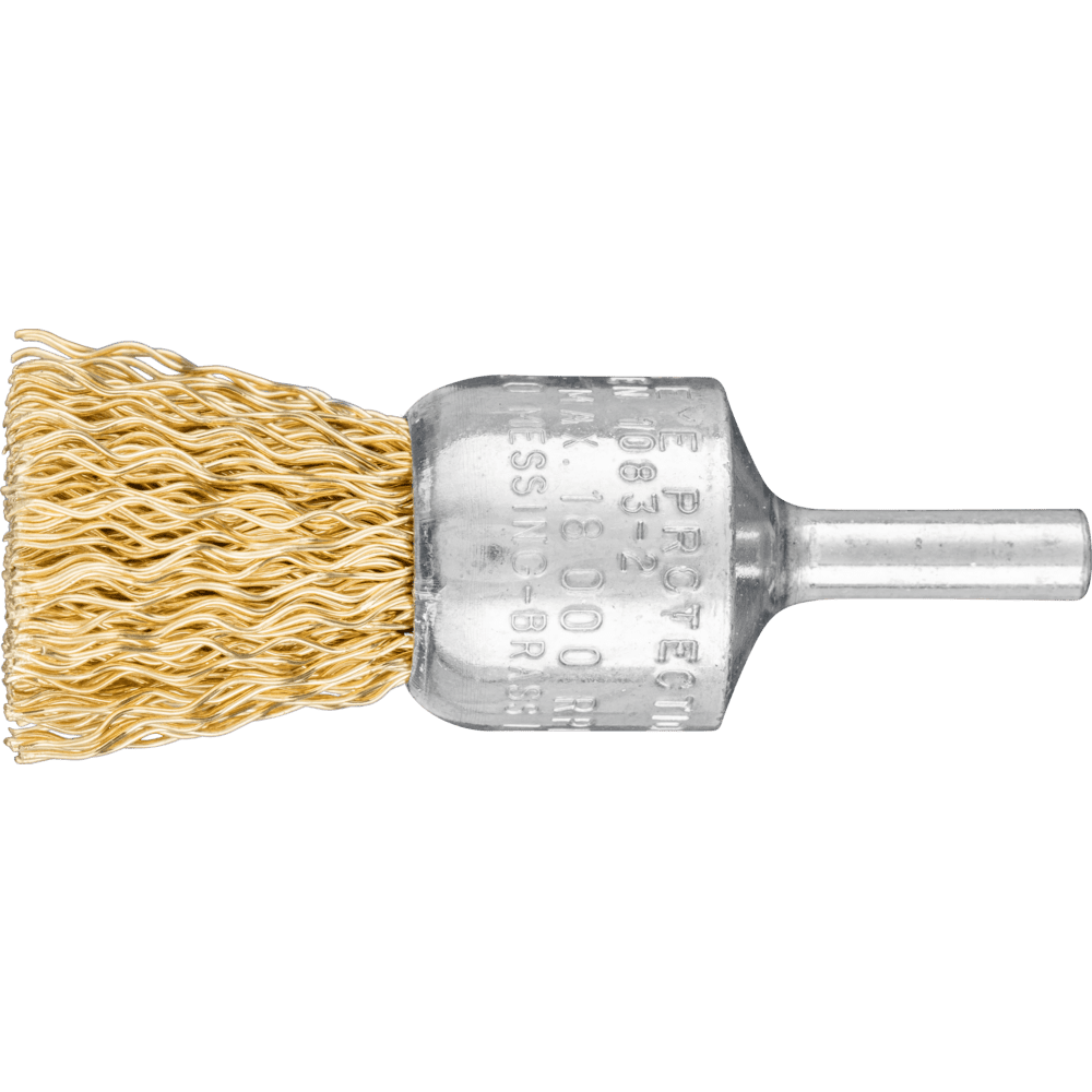 Für leichte Bürstarbeiten wie Entgraten, Reinigen und Entrosten geeignet. Bürsten mit Besatzmaterial Messingdraht eignen sich für besondere Anwendungsbereiche wie dem Oberflächenfinish an Werkstücken aus Kupfer und Messing. Messingdraht ist im Vergleich zu Stahldraht weicher und flexibler. PFERD TOOLS verwendet bei allen Bürsten mit Messingdraht die Drahtqualität CuZn37. Messingdraht hält Temperaturen bis 180 °C stand.