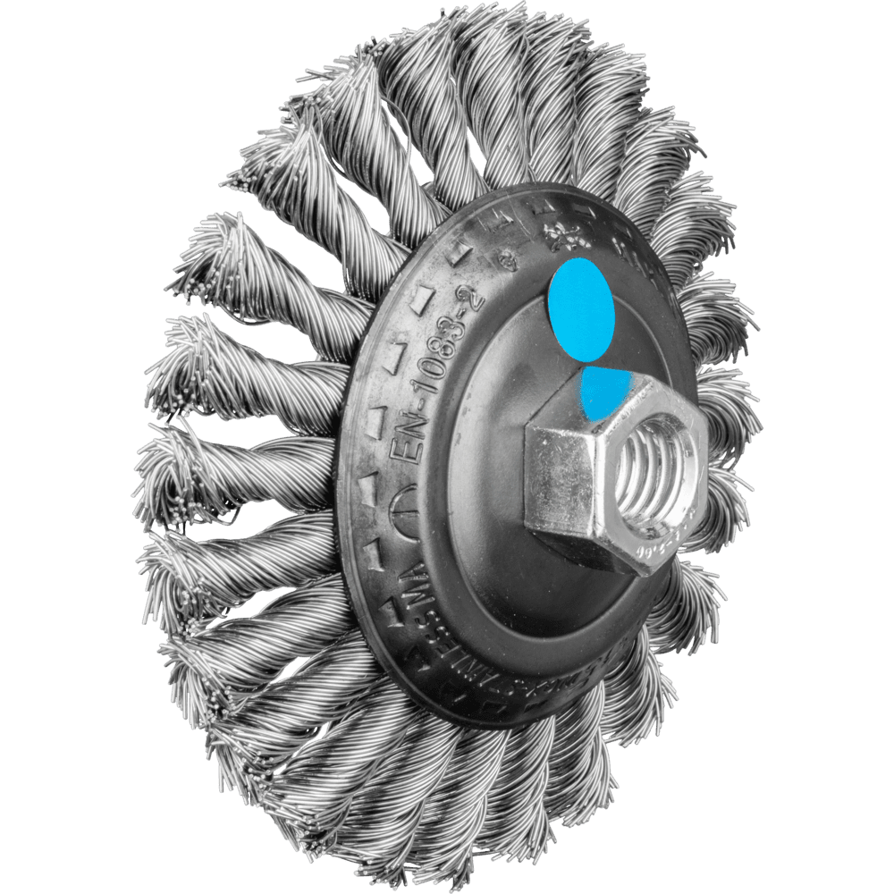 Aggressiv arbeitende Bürste. Hervorragend für schwere Bürstarbeiten wie Entgraten, Reinigen, Entrosten und Entzundern sowie zum Entfernen von Schweißspritzern geeignet. Um die besonderen Ansprüche bei der Bearbeitung von Edelstahl (INOX) zu erfüllen, verwendet PFERD TOOLS bei allen INOX-Bürsten die Drahtqualität 1.4310 (V2A). Praxiserfahrungen aus dem industriellen Umfeld bestätigen, dass sie eine sehr gute Korrosionsbeständigkeit bei optimaler Standzeit aufweist. Alle PFERD TOOLS Bürsten mit INOX-Besatz sind blau gekennzeichnet und für den Einsatz auf allen Edelstählen (INOX), wie z. B. V4A, geeignet. Die Drahtqualität 1.4310 neigt bei Kaltverfestigung zu ferromagnetischem Verhalten, das heißt, sie wird von Magneten angezogen.;Ursache hierfür ist eine Gefügeveränderung, die durch Verformung, z. B. während des Drahtziehens, hervorgerufen wird. Dies hat keinen Einfluss auf die Qualität und Korrosionsbeständigkeit des INOX-Besatzes. Er behält seine korrosionsbeständigen Eigenschaften. Edelstahldraht (INOX) hält Temperaturen bis 450 °C stand.