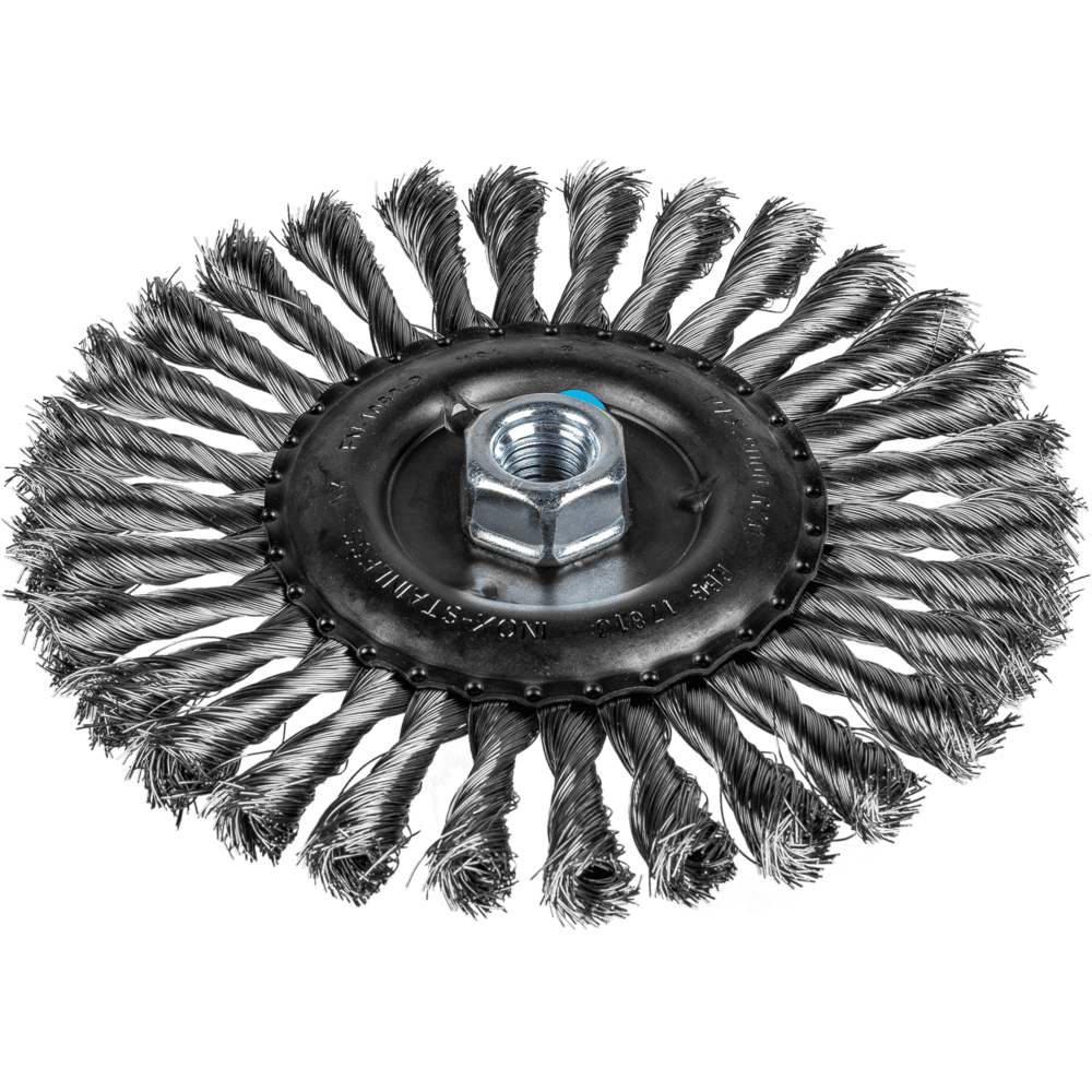 Aggressiv arbeitende Bürste. Für schwere Bürstarbeiten im Metallbau wie Entzundern, Entrosten, Entgraten, Putzen von Schweißnähten, Entfernen von Kleberresten und Schweißspritzern geeignet. Um die besonderen Ansprüche bei der Bearbeitung von Edelstahl (INOX) zu erfüllen, verwendet PFERD TOOLS bei allen INOX-Bürsten die Drahtqualität 1.4310 (V2A). Praxiserfahrungen aus dem industriellen Umfeld bestätigen, dass sie eine sehr gute Korrosionsbeständigkeit bei optimaler Standzeit aufweist. Alle PFERD TOOLS Bürsten mit INOX-Besatz sind blau gekennzeichnet und für den Einsatz auf allen Edelstählen (INOX), wie z. B. V4A, geeignet. Die Drahtqualität 1.4310 neigt bei Kaltverfestigung zu ferromagnetischem Verhalten, das heißt, sie wird von Magneten angezogen.;Ursache hierfür ist eine Gefügeveränderung, die durch Verformung, z. B. während des Drahtziehens, hervorgerufen wird. Dies hat keinen Einfluss auf die Qualität und Korrosionsbeständigkeit des INOX-Besatzes. Er behält seine korrosionsbeständigen Eigenschaften. Edelstahldraht (INOX) hält Temperaturen bis 450 °C stand.