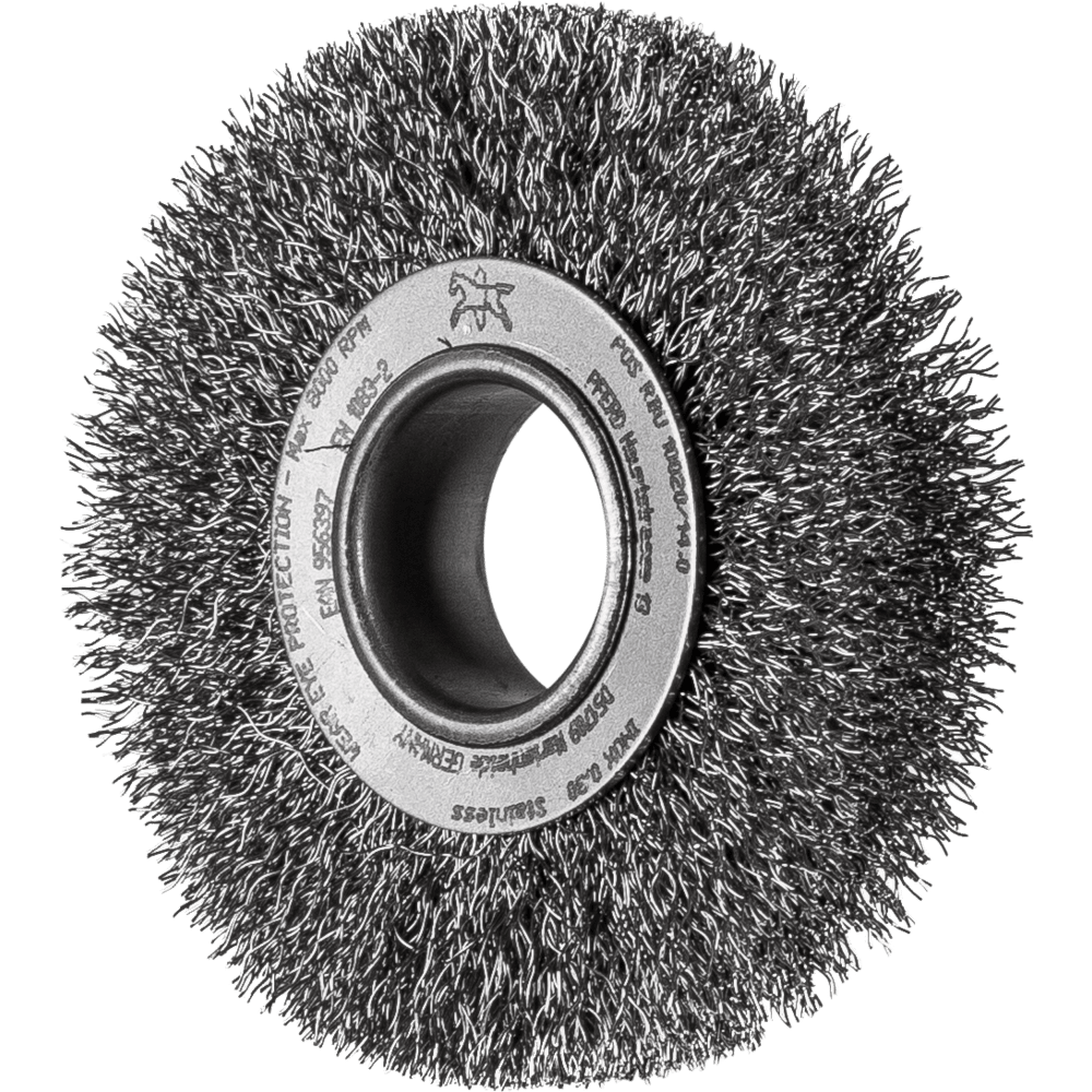 PFERD TOOLS Rundbürste breit ungezopft RBU Ø100x20xvariable Bohrung Edelstahl-Draht-Ø0,30 Schleifbock