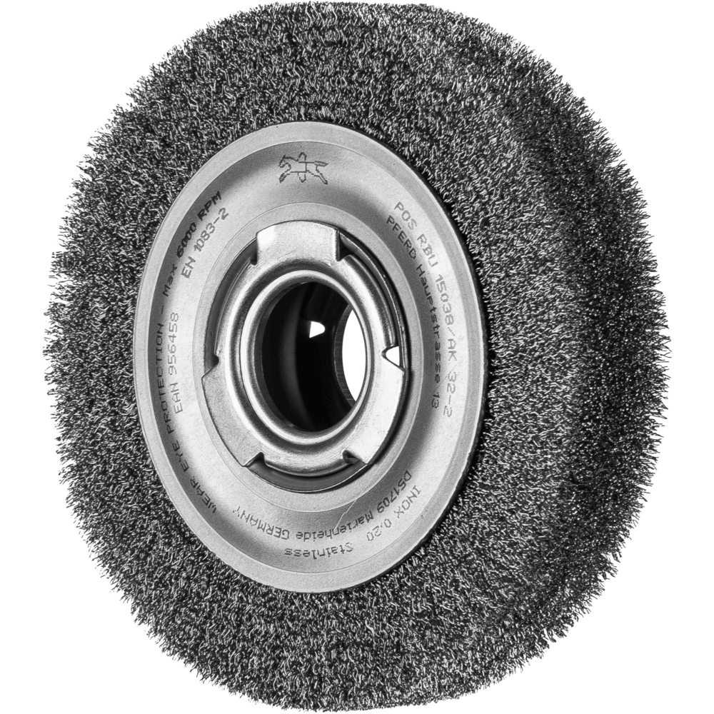 PFERD TOOLS Rundbürste breit ungezopft RBU Ø150x38xvariable Bohrung Edelstahl-Draht-Ø0,20 Schleifbock