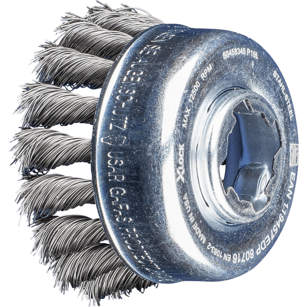 Aggressiv arbeitende Bürste. Hervorragend für schwere Bürstarbeiten wie Entgraten, Reinigen, Entrosten und Entzundern sowie zum Entfernen von Schweißspritzern geeignet. Mit dem Bosch X-LOCK-System für Winkelschleifer wechseln Sie Werkzeuge schnell und komfortabel. Statt einer runden Bohrung weist das X-LOCK- System eine x-förmige Kontur auf, die das formschlüssige Fixieren des Werkzeuges auf dem Winkelschleifer erlaubt. Das garantiert das sichere Aufspannen von verschiedenen Werkzeugen in kürzester Zeit. Das einzigartige System erfüllt höchste Qualitäts- und Sicherheitsstandards und hält auch rauen und harten Einsatzbedingungen stand.;X-LOCK von Bosch ist das weltweit erste Schnellwechselsystem für Winkelschleifer: Werkzeug in der X-LOCK-Aufnahme positionieren, aufklicken – fertig. So einfach war der Zubehörwechsel bei Winkelschleifern noch nie. X-LOCK schafft einen neuen Standard, der Profis die Arbeit erleichtert und die Produktivität steigert. Bosch Power Tools setzt auf starke Partner wie PFERD TOOLS. So hat PFERD TOOLS das Prinzip für die Verbindung von X-LOCK-Stanzteil mit dem gebundenen Schleifmittel, Fächerscheiben und Bürsten entwickelt sowie die Voraussetzungen geschaffen, dass diese industriell hergestellt werden können. Stahldraht ist das gebräuchlichste Besatzmaterial. Bürsten mit dem Besatzmaterial Stahldraht eignen sich besonders gut zur Oberflächenbearbeitung und zum Entgraten. PFERD TOOLS Spezialdraht verfügt über eine hohe Zug- und Biegewechselfestigkeit. Dieser gewährleistet eine optimale Abnutzung des Drahtes sowie eine hohe Standzeit, auch bei extremen Bürstanwendungen. Stahldraht hält Temperaturen bis 300 °C stand.