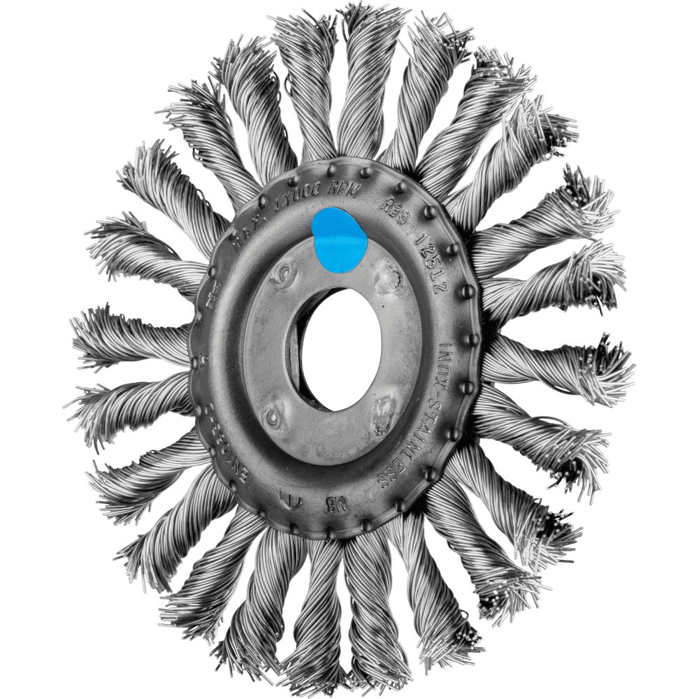 Um die besonderen Ansprüche bei der Bearbeitung von Edelstahl (INOX) zu erfüllen, verwendet PFERD TOOLS bei allen INOX-Bürsten die Drahtqualität 1.4310 (V2A). Praxiserfahrungen aus dem industriellen Umfeld bestätigen, dass sie eine sehr gute Korrosionsbeständigkeit bei optimaler Standzeit aufweist. Alle PFERD TOOLS Bürsten mit INOX-Besatz sind blau gekennzeichnet und für den Einsatz auf allen Edelstählen (INOX), wie z. B. V4A, geeignet. Die Drahtqualität 1.4310 neigt bei Kaltverfestigung zu ferromagnetischem Verhalten, das heißt, sie wird von Magneten angezogen.;Ursache hierfür ist eine Gefügeveränderung, die durch Verformung, z. B. während des Drahtziehens, hervorgerufen wird. Dies hat keinen Einfluss auf die Qualität und Korrosionsbeständigkeit des INOX-Besatzes. Er behält seine korrosionsbeständigen Eigenschaften. Edelstahldraht (INOX) hält Temperaturen bis 450 °C stand. Sehr aggressiv arbeitende Bürste. Für schwere Bürstarbeiten im Metallbau wie Entzundern, Entrosten, Entgraten, Putzen von Schweißnähten und Entfernen von Kleberresten und Schweißspritzern geeignet.