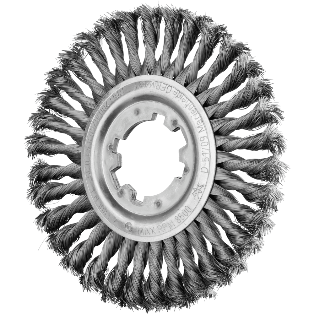 Stahldraht ist das gebräuchlichste Besatzmaterial. Bürsten mit dem Besatzmaterial Stahldraht eignen sich besonders gut zur Oberflächenbearbeitung und zum Entgraten. PFERD TOOLS Spezialdraht verfügt über eine hohe Zug- und Biegewechselfestigkeit. Dieser gewährleistet eine optimale Abnutzung des Drahtes sowie eine hohe Standzeit, auch bei extremen Bürstanwendungen. Stahldraht hält Temperaturen bis 300 °C stand. Aggressive und stabile Bürste, die hoher mechanischer Belastung standhält. Für alle schweren Bürstarbeiten im stationären und automatisierten Einsatz, z. B. Entgratarbeiten, geeignet.