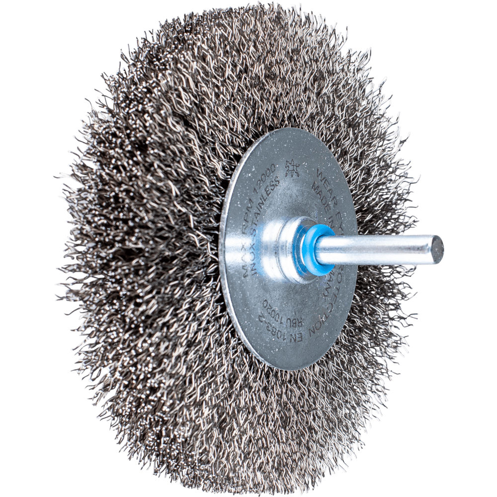 Universell zum Reinigen, Entrosten, Glätten, Putzen von Schweißnähten, leichten Entgraten und Entfernen von Korrosion und Lacken einsetzbar. Um die besonderen Ansprüche bei der Bearbeitung von Edelstahl (INOX) zu erfüllen, verwendet PFERD TOOLS bei allen INOX-Bürsten die Drahtqualität 1.4310 (V2A). Praxiserfahrungen aus dem industriellen Umfeld bestätigen, dass sie eine sehr gute Korrosionsbeständigkeit bei optimaler Standzeit aufweist. Alle PFERD TOOLS Bürsten mit INOX-Besatz sind blau gekennzeichnet und für den Einsatz auf allen Edelstählen (INOX), wie z. B. V4A, geeignet. Die Drahtqualität 1.4310 neigt bei Kaltverfestigung zu ferromagnetischem Verhalten, das heißt, sie wird von Magneten angezogen.;Ursache hierfür ist eine Gefügeveränderung, die durch Verformung, z. B. während des Drahtziehens, hervorgerufen wird. Dies hat keinen Einfluss auf die Qualität und Korrosionsbeständigkeit des INOX-Besatzes. Er behält seine korrosionsbeständigen Eigenschaften. Edelstahldraht (INOX) hält Temperaturen bis 450 °C stand.