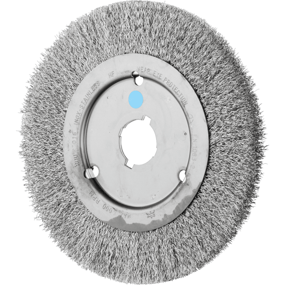Um die besonderen Ansprüche bei der Bearbeitung von Edelstahl (INOX) zu erfüllen, verwendet PFERD TOOLS bei allen INOX-Bürsten die Drahtqualität 1.4310 (V2A). Praxiserfahrungen aus dem industriellen Umfeld bestätigen, dass sie eine sehr gute Korrosionsbeständigkeit bei optimaler Standzeit aufweist. Alle PFERD TOOLS Bürsten mit INOX-Besatz sind blau gekennzeichnet und für den Einsatz auf allen Edelstählen (INOX), wie z. B. V4A, geeignet. Die Drahtqualität 1.4310 neigt bei Kaltverfestigung zu ferromagnetischem Verhalten, das heißt, sie wird von Magneten angezogen.;Ursache hierfür ist eine Gefügeveränderung, die durch Verformung, z. B. während des Drahtziehens, hervorgerufen wird. Dies hat keinen Einfluss auf die Qualität und Korrosionsbeständigkeit des INOX-Besatzes. Er behält seine korrosionsbeständigen Eigenschaften. Edelstahldraht (INOX) hält Temperaturen bis 450 °C stand. Hervorragend für mittelschwere Bürstarbeiten auf großflächigen Werkstücken im handgeführten und maschinellen Einsatz geeignet.
