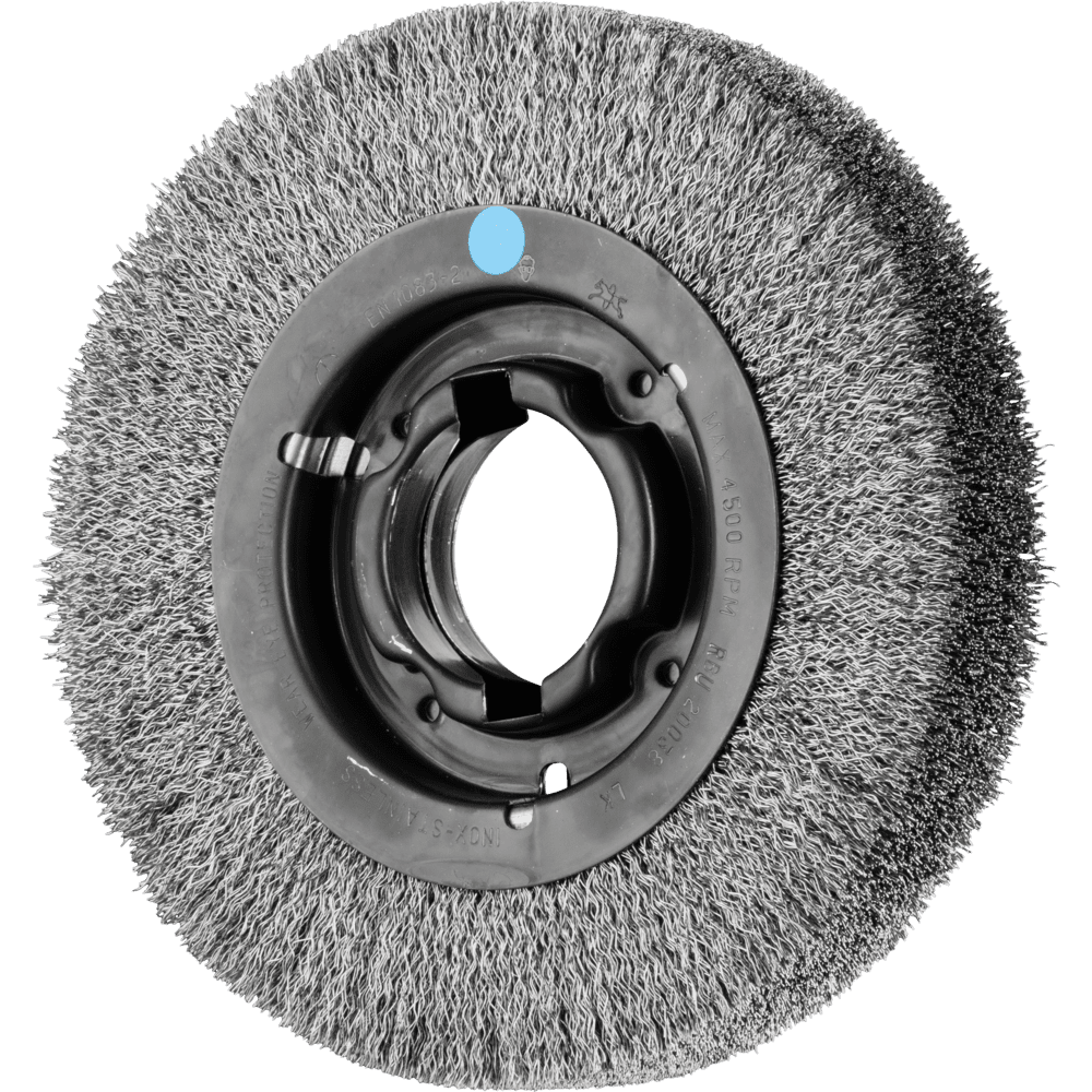 Hervorragend für mittelschwere Bürstarbeiten auf großflächigen Werkstücken im handgeführten und maschinellen Einsatz geeignet. Um die besonderen Ansprüche bei der Bearbeitung von Edelstahl (INOX) zu erfüllen, verwendet PFERD TOOLS bei allen INOX-Bürsten die Drahtqualität 1.4310 (V2A). Praxiserfahrungen aus dem industriellen Umfeld bestätigen, dass sie eine sehr gute Korrosionsbeständigkeit bei optimaler Standzeit aufweist. Alle PFERD TOOLS Bürsten mit INOX-Besatz sind blau gekennzeichnet und für den Einsatz auf allen Edelstählen (INOX), wie z. B. V4A, geeignet. Die Drahtqualität 1.4310 neigt bei Kaltverfestigung zu ferromagnetischem Verhalten, das heißt, sie wird von Magneten angezogen.;Ursache hierfür ist eine Gefügeveränderung, die durch Verformung, z. B. während des Drahtziehens, hervorgerufen wird. Dies hat keinen Einfluss auf die Qualität und Korrosionsbeständigkeit des INOX-Besatzes. Er behält seine korrosionsbeständigen Eigenschaften. Edelstahldraht (INOX) hält Temperaturen bis 450 °C stand. Speziell für den industriellen Einsatz entwickelt.