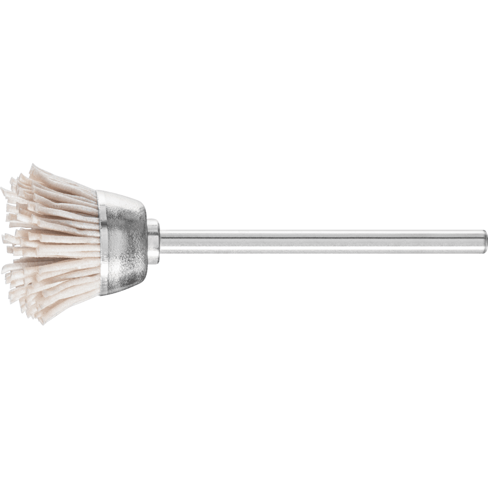 Für leichte Bürstarbeiten wie Entgraten, Reinigen und Polieren geeignet. Aufgrund des stirnseitigen Einsatzes mit der gesamten Bürstenoberfläche besonders für Bürstarbeiten auf kleinen Flächen geeignet. PFERD TOOLS bietet ein breites Programm an Miniaturbürsten für Präzisionsarbeiten an. Diese können auf Biegwellenantrieben, Mikromotoren oder Elektroantrieben eingesetzt werden. Bürsten mit Aluminiumoxid (AO) sind im Vergleich zu SiC weniger scharfkantig und aggressiv. Sie eignen sich hauptsächlich zum Polieren und Glätten als Finish weicher Metalle. Kunststoffbesatz hält Temperaturen bis 220° C stand.