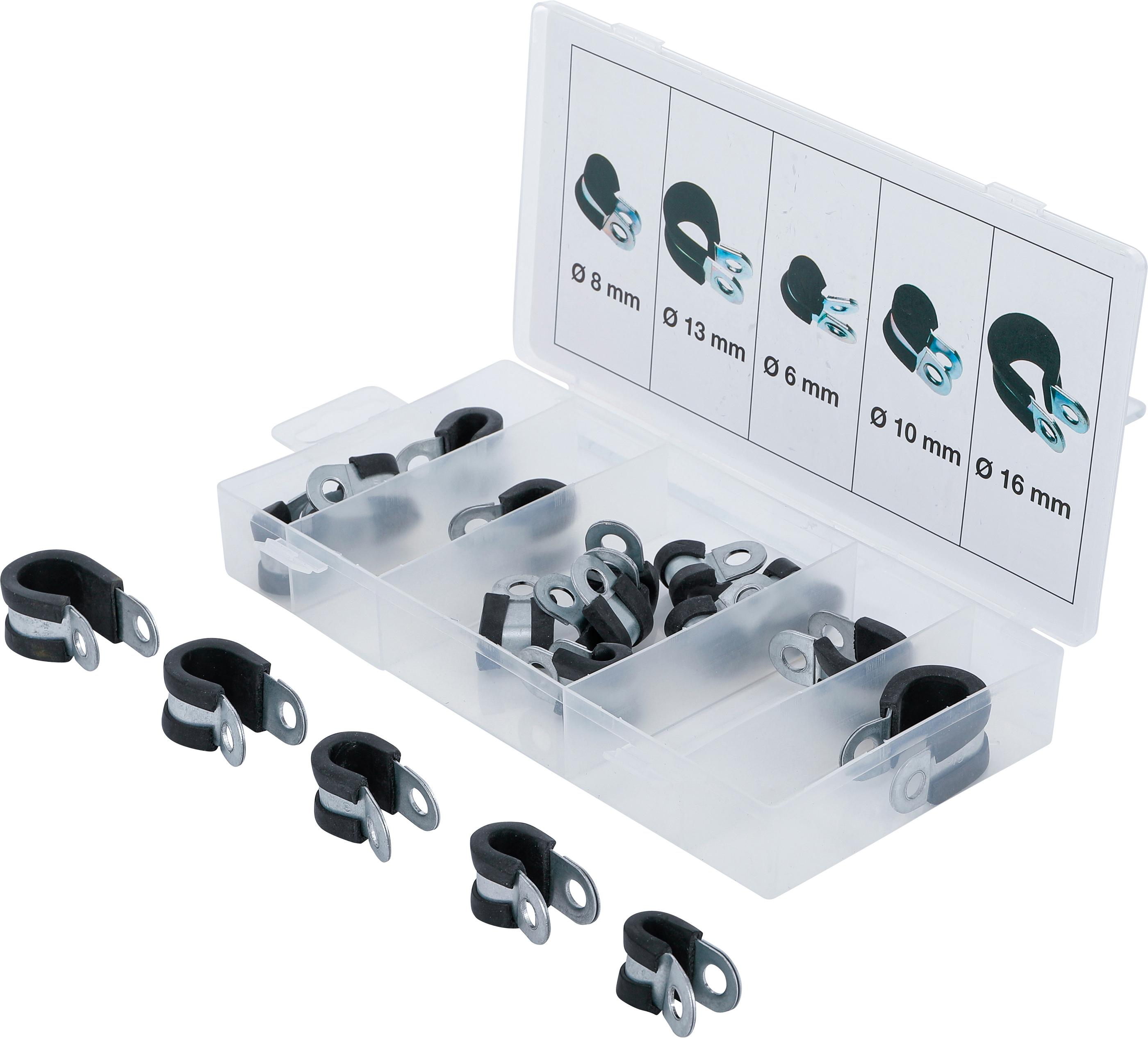 Gummierte Schlauchklemmen-Sortiment | Ø 6 - 16 mm | 18-tlg. BGS14145
