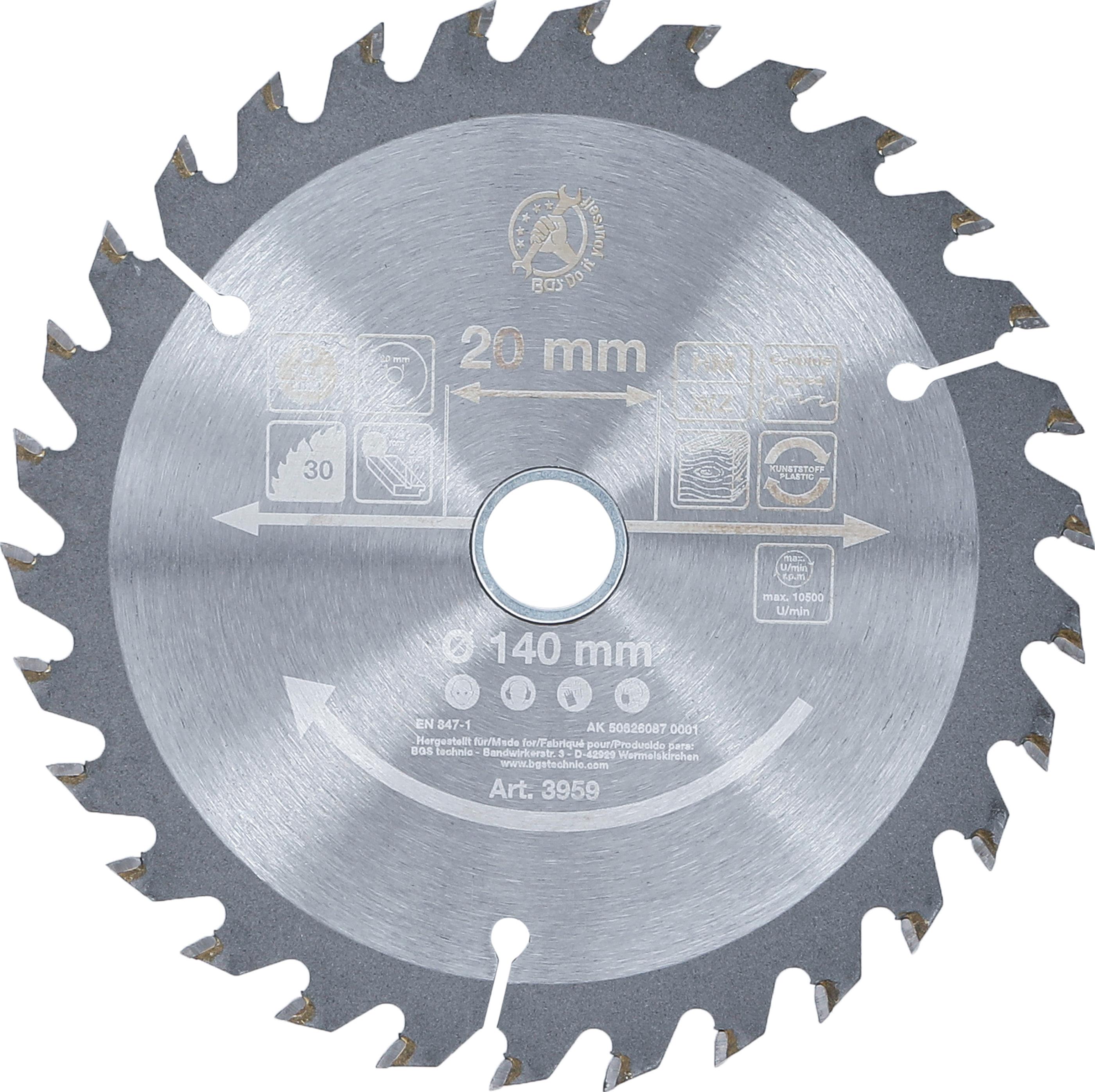 Hartmetall-Kreissägeblatt | Ø 140 x 20 x 2,3 mm | 30 Zähne BGS3959