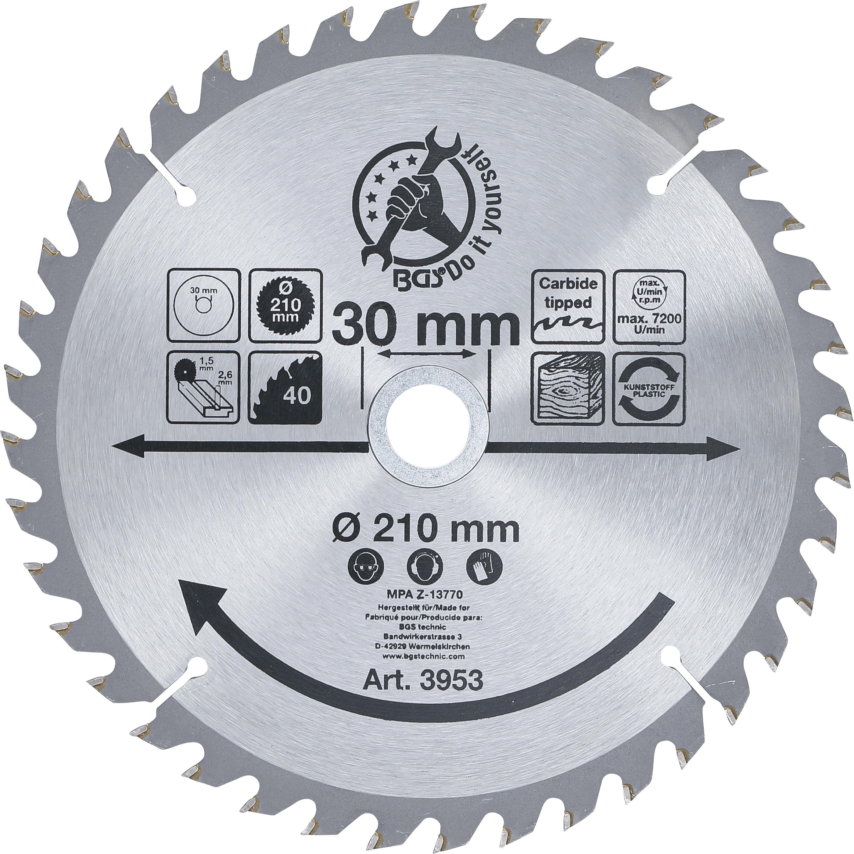 Hartmetall-Kreissägeblatt | Ø 210 x 30 x 2,6 mm | 40 Zähne BGS3953