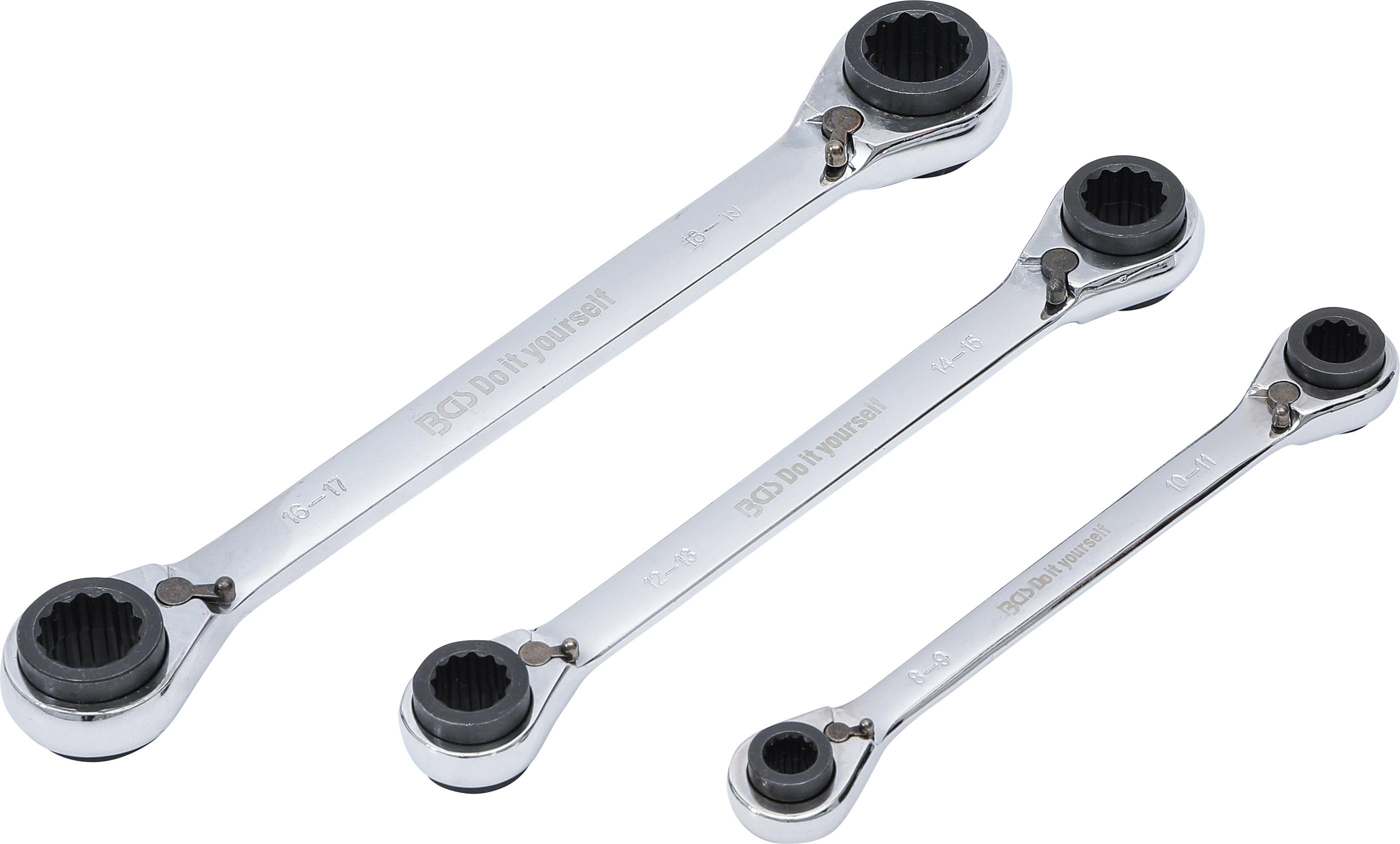 Ratschen-Ringschlüssel-Satz | 4-in-1 | SW 8 x 9 - 18 x 19 mm BGS6837