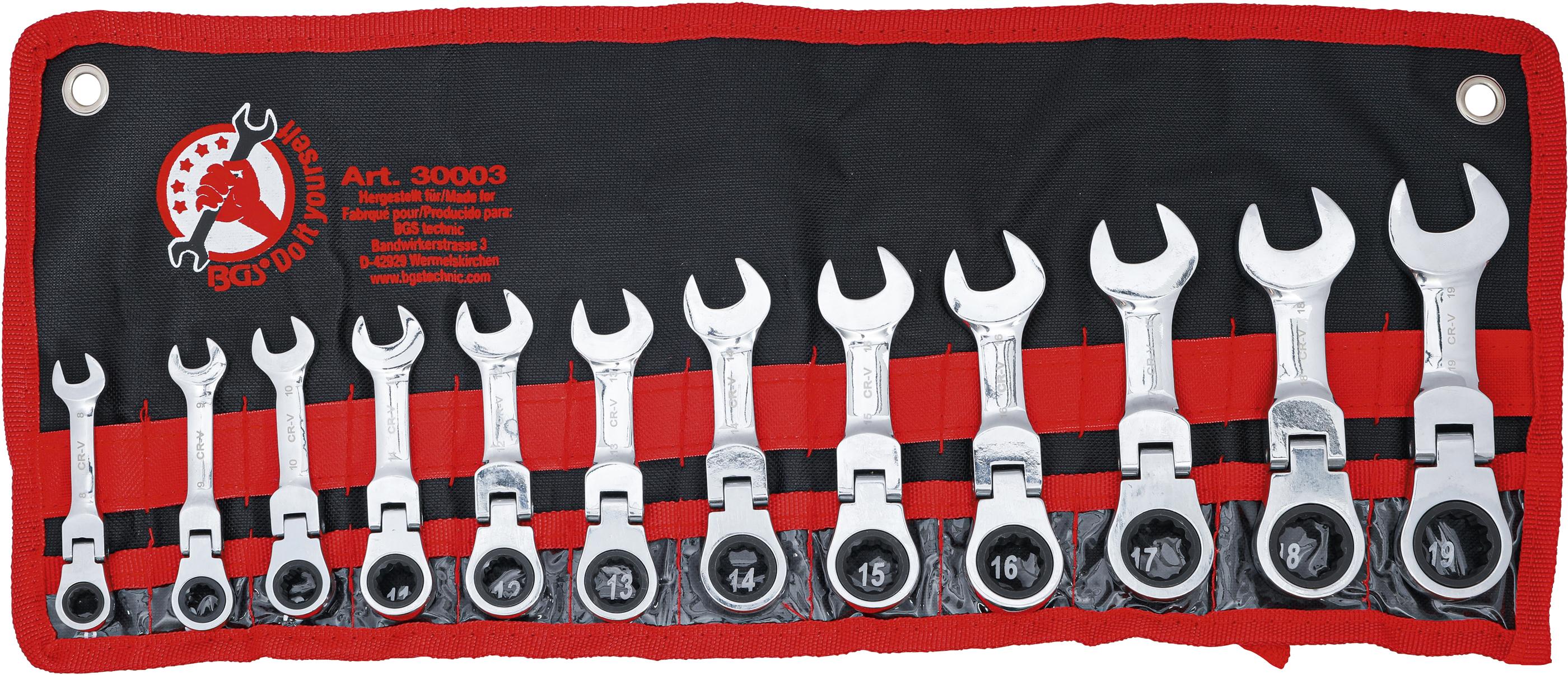 Ratschenring-Maulschlüssel-Satz | extra kurz | SW 8 - 19 mm | 12-tlg. BGS30003