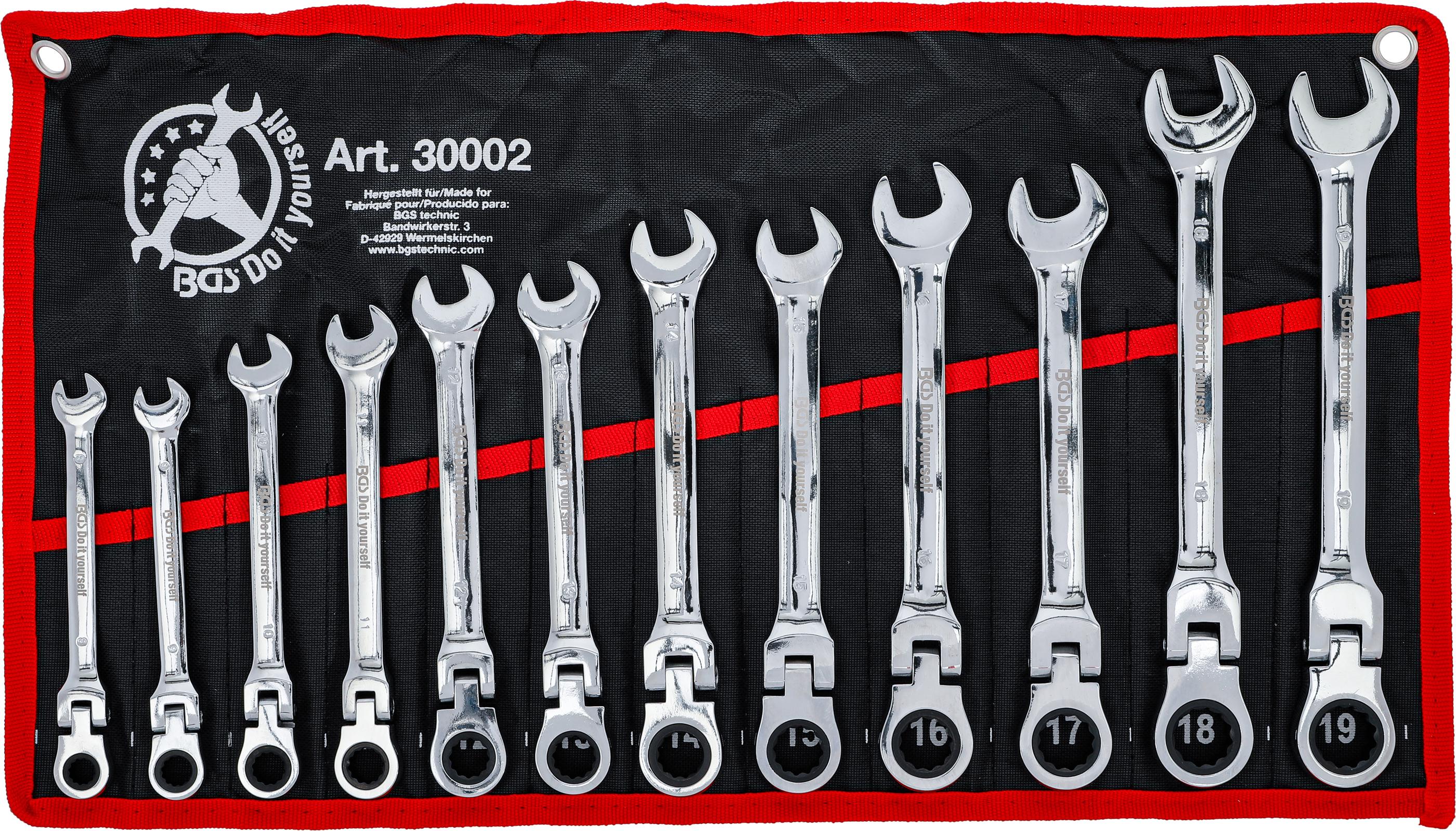 Ratschenring-Maulschlüssel-Satz | flexible Köpfe | SW 8 - 19 mm | 12-tlg. BGS30002
