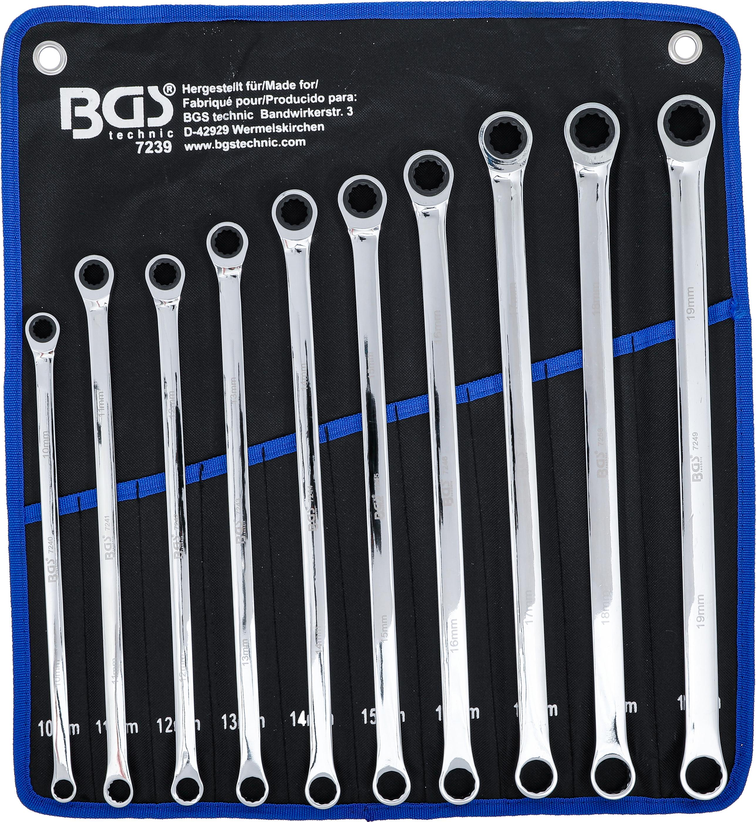 Ratschenring- und Ringschlüssel-Satz | extra lang | SW 10 - 19 mm | 10-tlg. BGS7239