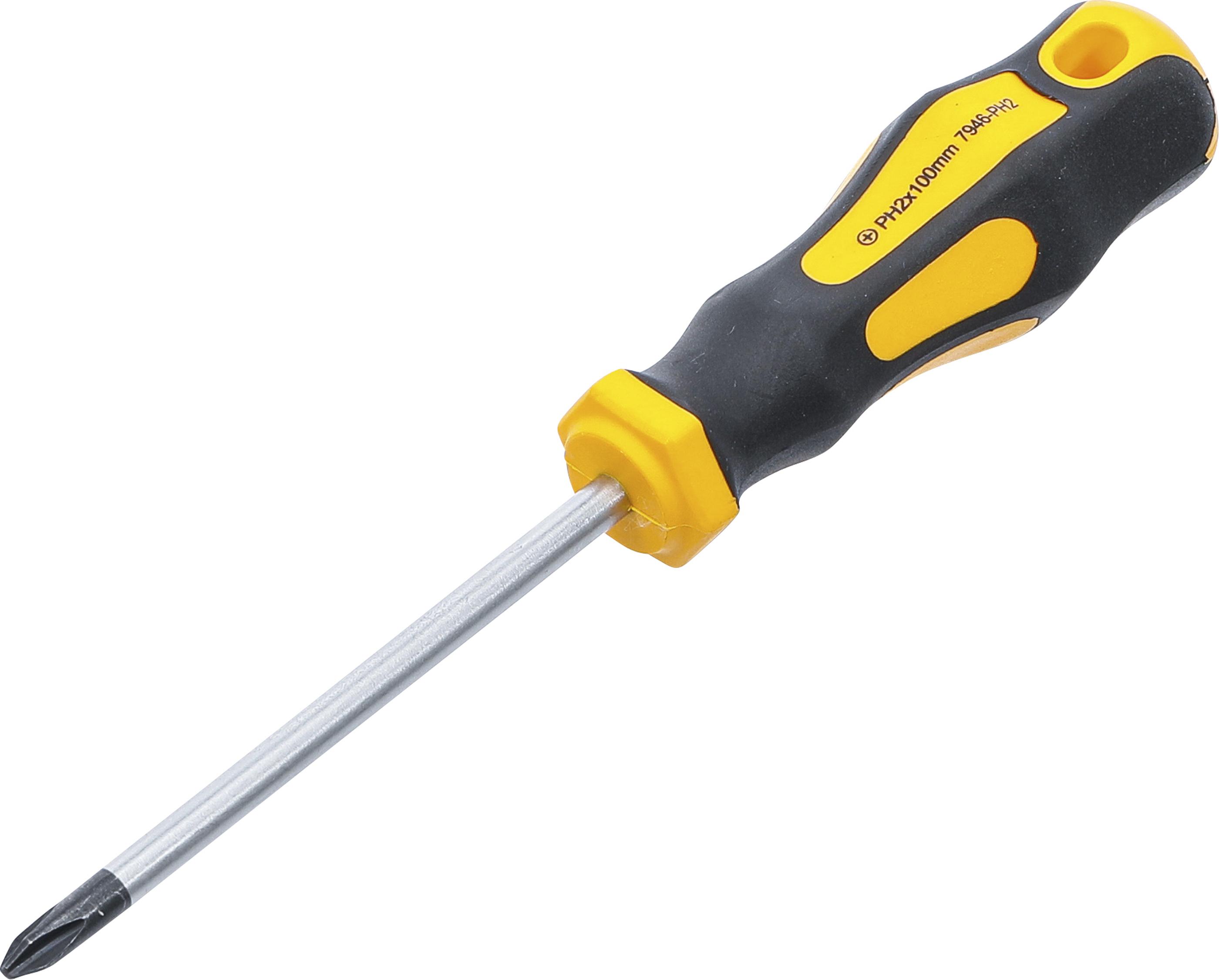 Abtriebsprofil: Kreuzschlitz (PH)$Abtriebsprofilgröße: PH2 $Bruttogewicht: 80 g$Klingenlänge: 100 mm$Material: Chrom-Vanadium-Stahl$Verpackung für Wandbehang geeignet: Ja