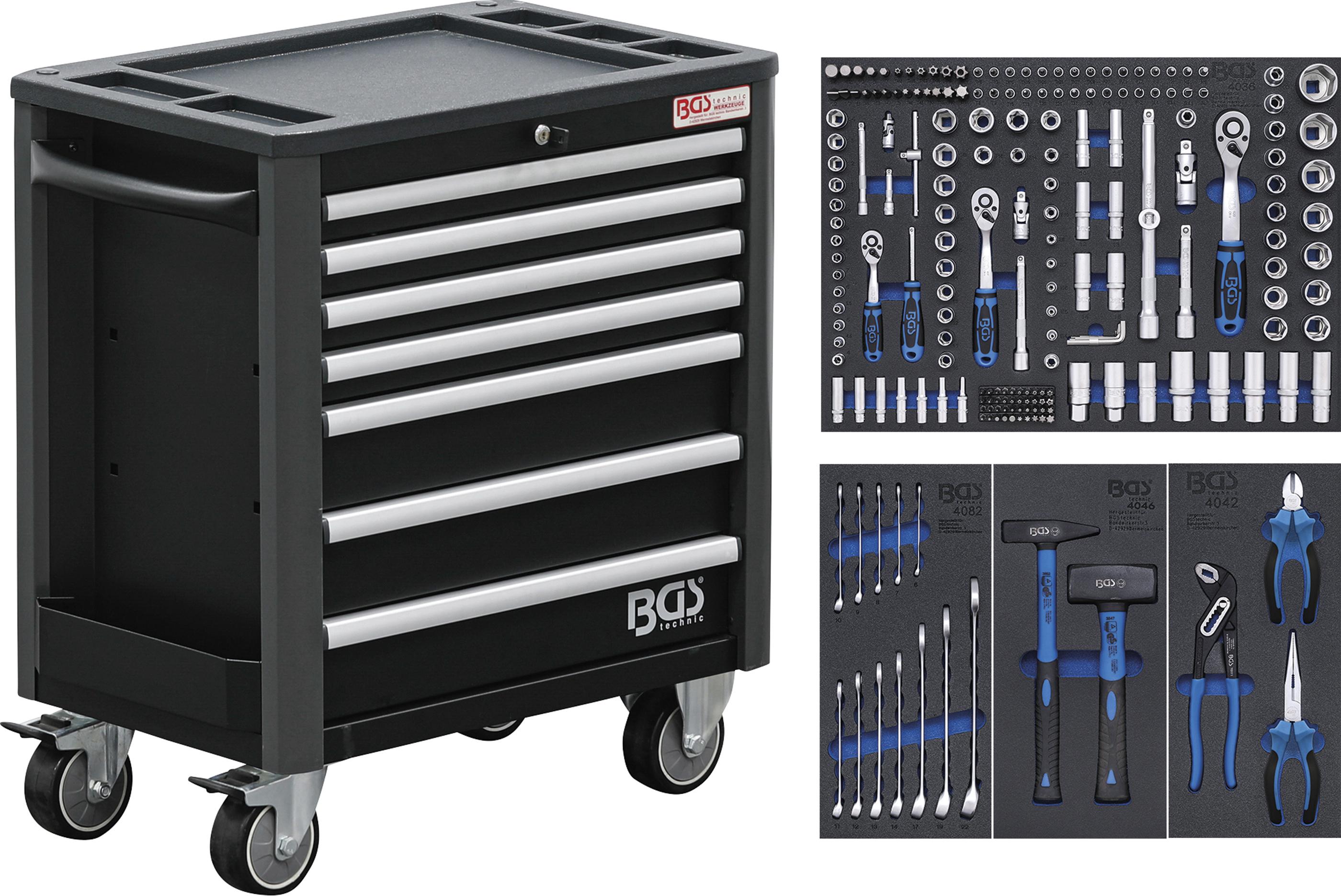 Werkstattwagen | 7 Schubladen | extra geringe Bauhöhe | mit 209 Werkzeugen BGS4140