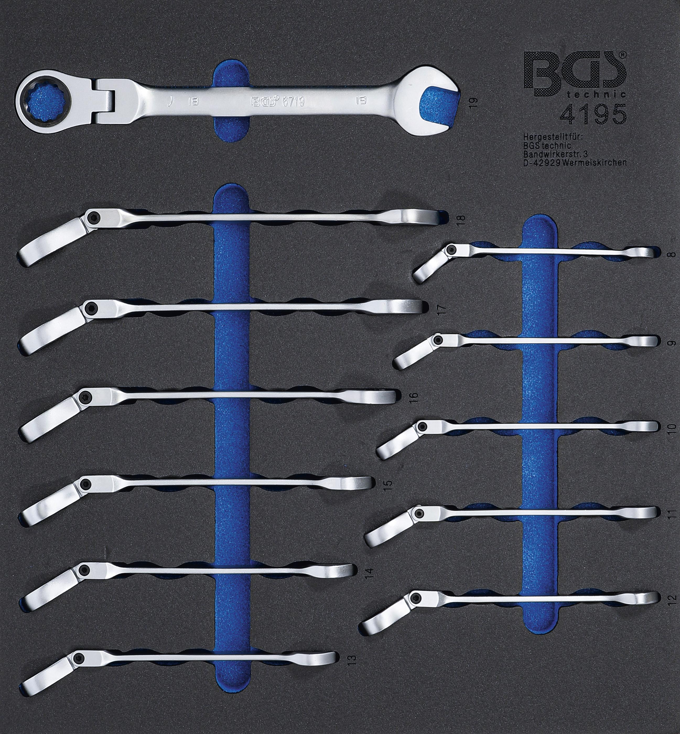 Werkstattwageneinlage 2/3: Ratschenring-Maulschlüssel-Satz | abwinkelbar | SW 8 - 19 mm | 12-tlg. BGS4195