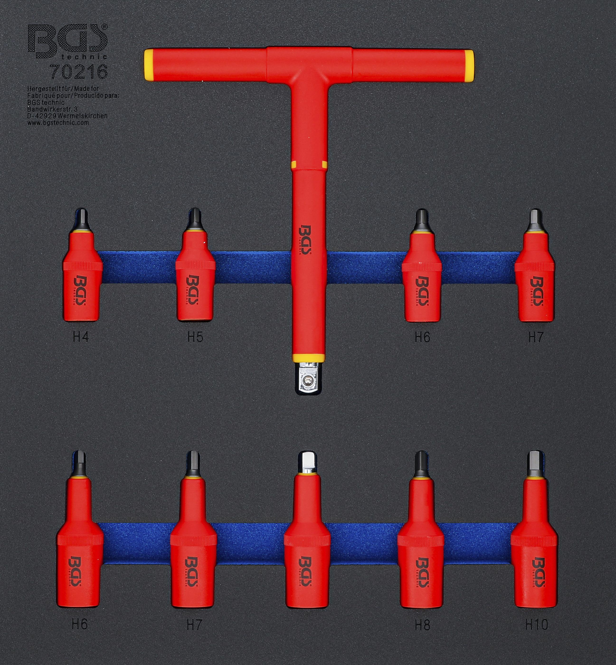 Werkstattwageneinlage 2/3: VDE-Bit-Einsatz-Satz | Antrieb Innenvierkant 10 mm (3/8") / 12,5 mm (1/2") | Innensechskant 4 - 10 mm | 10-tlg. BGS70216
